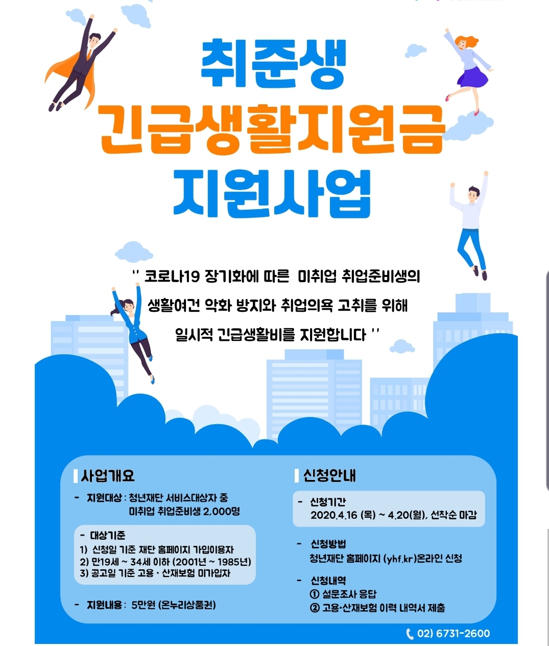 ○ (사업목적) 코로나19 장기화에 따른 채용둔화로 어려움에 처한 미취업 취업준비생의 생활여건 악화 방지와 취업의욕고취를 위한 일시적 긴급생활비 지원