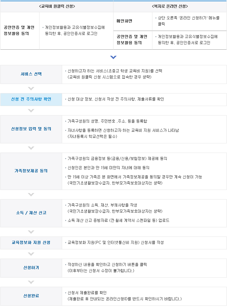 교육급여 신청시 주의사항