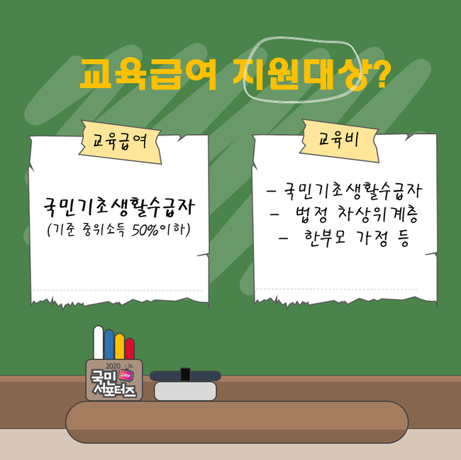 교육급여는 경제적으로 어려운 아이들을 위한 기초생활보장제도입니다. 필요한 교육 지원비를 지급해 저소득층의 교육비 부담을 덜고, 교육의 평등권을 보장하죠. 단지 비용을 지급하는 데 목적이 있는 것이 아니라,수급자에게 적정한 교육 기회를 제공해 자립할 수 있는 능력을 배양하고, 가난의 대물림을 차단하기 위한 맞춤형 급여입니다. 우리나라의 교육 균등성을 위해 도입된 이 제도는 많은 학생들에게 희망이 되고 있습니다.