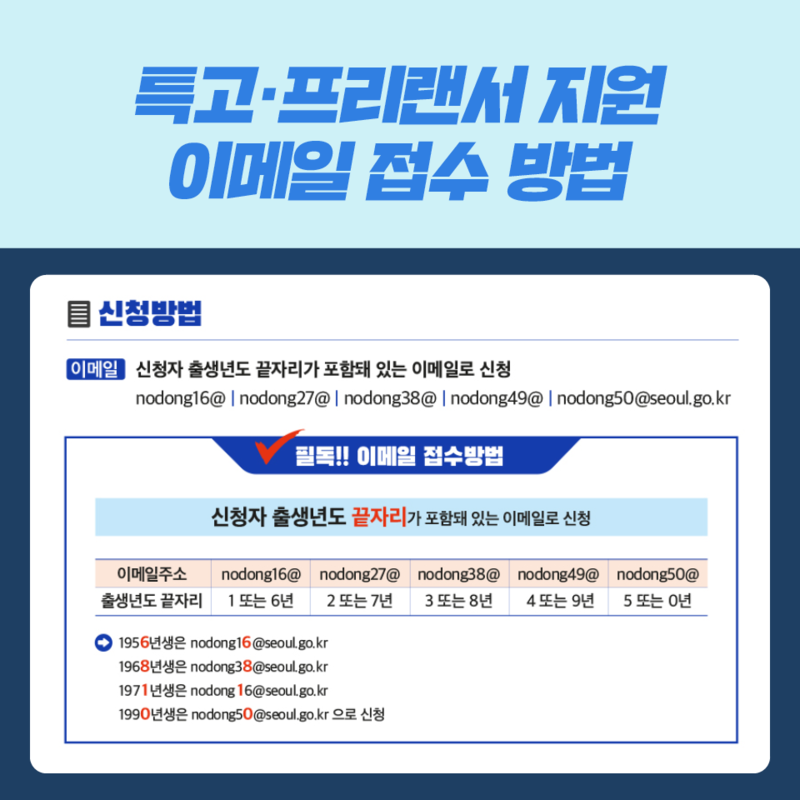 신청 방법 : 신청자 출생 연도 끝자리가 포함돼 있는 이메일로 신청