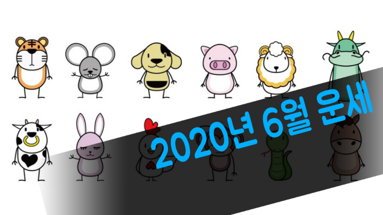 쥐띠/소띠/호랑이띠/토끼띠/용띠/뱀띠/말띠/양띠/원숭이띠/닭띠/개띠/돼지띠에 대한 2020년 6월 띠별 운세입니다.