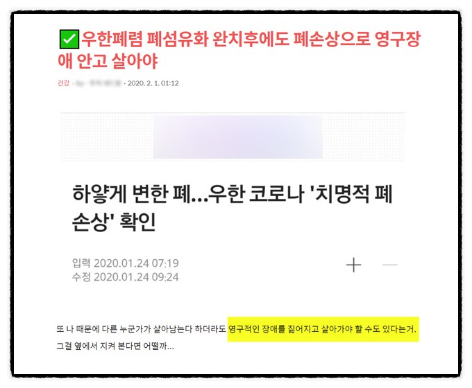 심금염은 위에 말했죠.. 폐질환과 같은 대표적 코로나 후유증이라고하니..