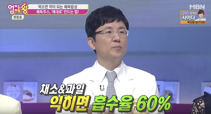 하지만 익히면 해독주스 흡수율이 60%까지 올라갑니다