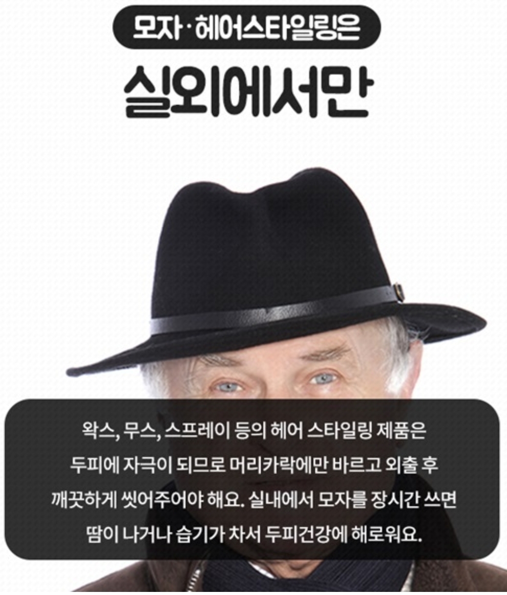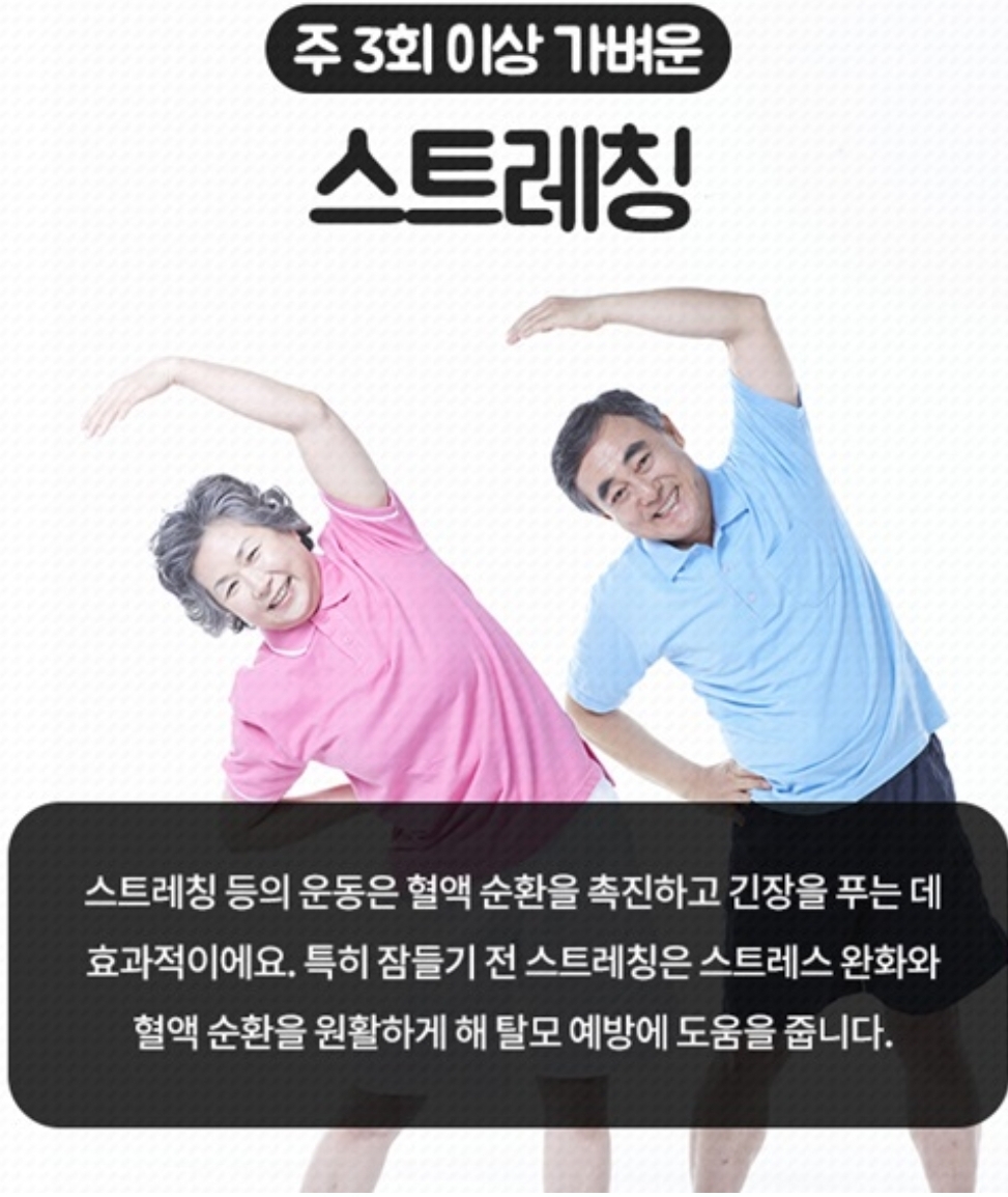 - 머리는 일주일에 최소 2~3회 감습니다.(기름기, 때 등의 노폐물이 모공을 막으면 탈모의 원인이 됩니다.)