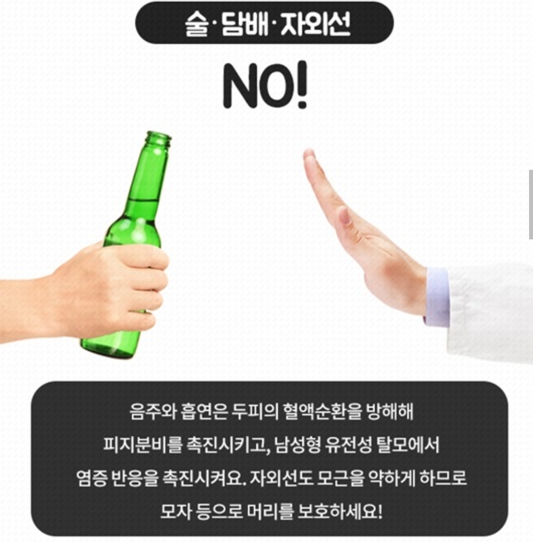 - 과도한 음주와 흡연은 모근의 영양 공급을 방해합니다.