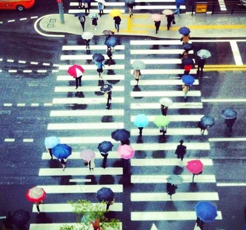 비 오는 길을 우산 쓰고 걸어가는 꿈
