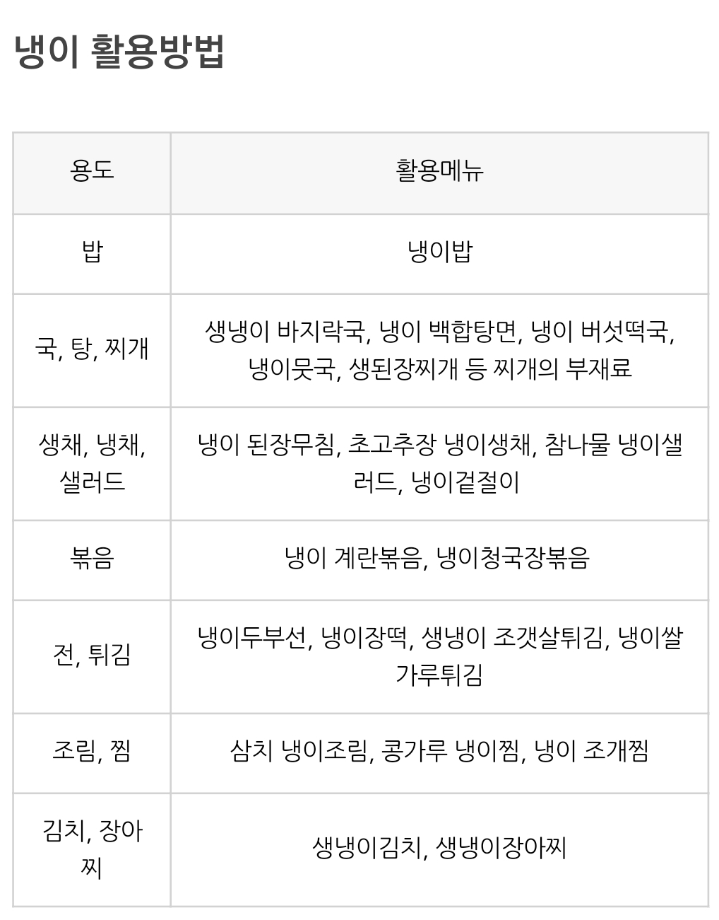 냉이 활용방법